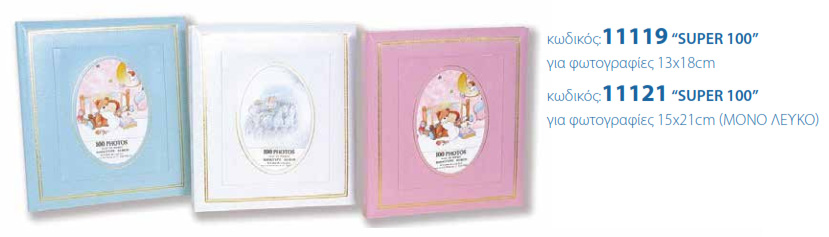 11119 ΑΛΜΠΟΥΜ ΘΗΚΕΣ SUPER-100 13x18cm ροζ,σιέλ,λευκό/κορνίζα