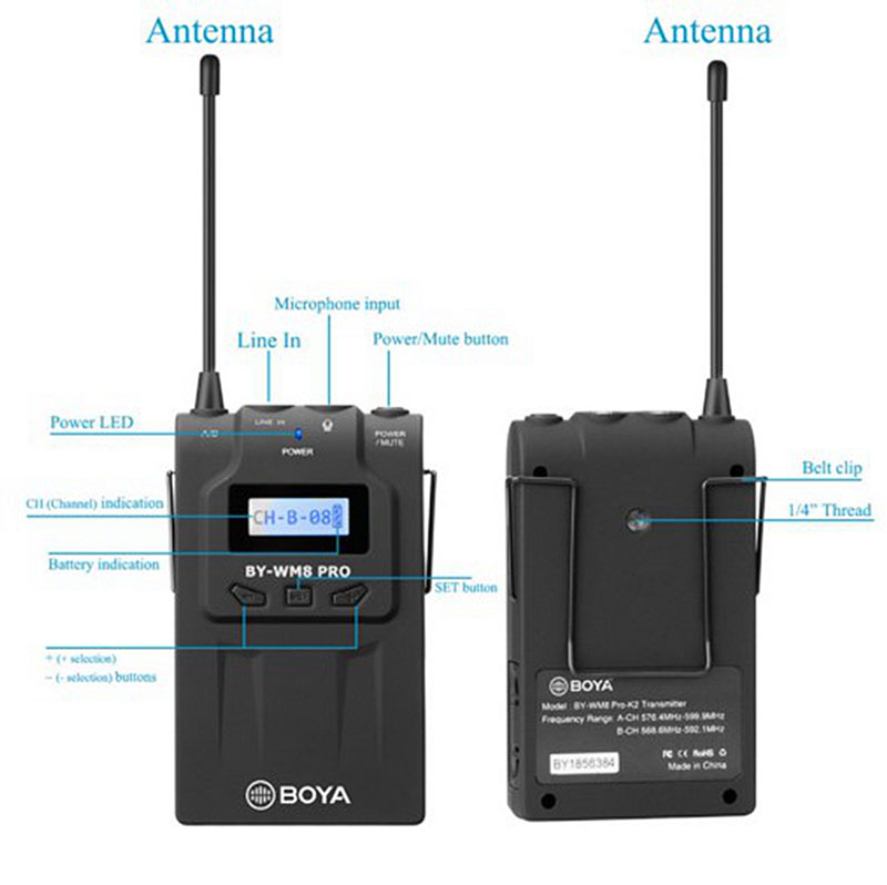 Boya BY-WM8 Pro-K1. Ασύρματο μικρόφωνο ψείρα UHF με οθόνη LCD. Το BOYA BY-WM8 Pro-K1 είναι ένα αναβαθμισμένο ασύρματο σύστημα μικροφώνου διπλού καναλιού UHF.