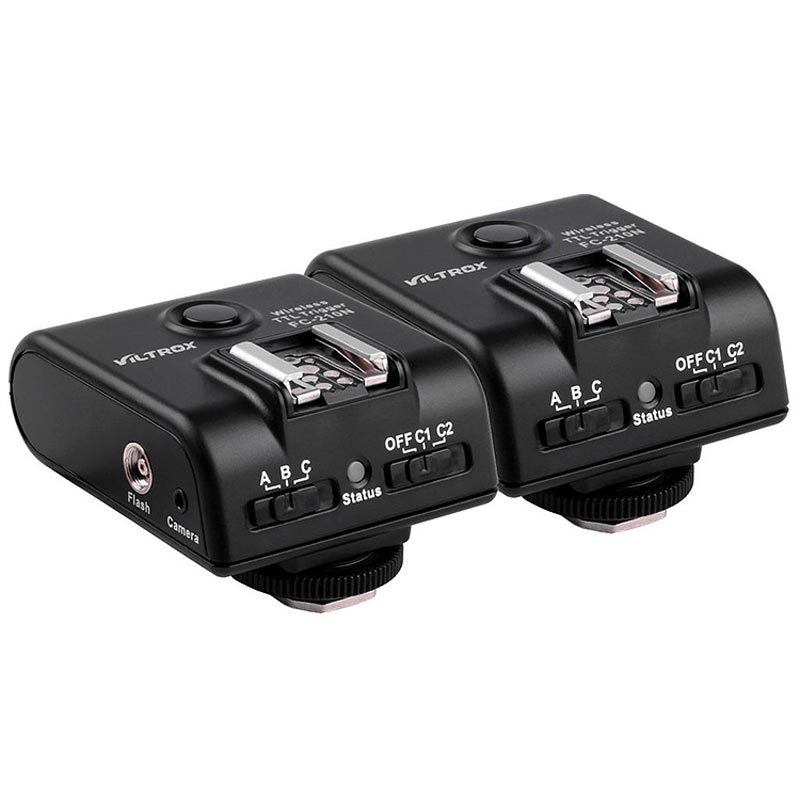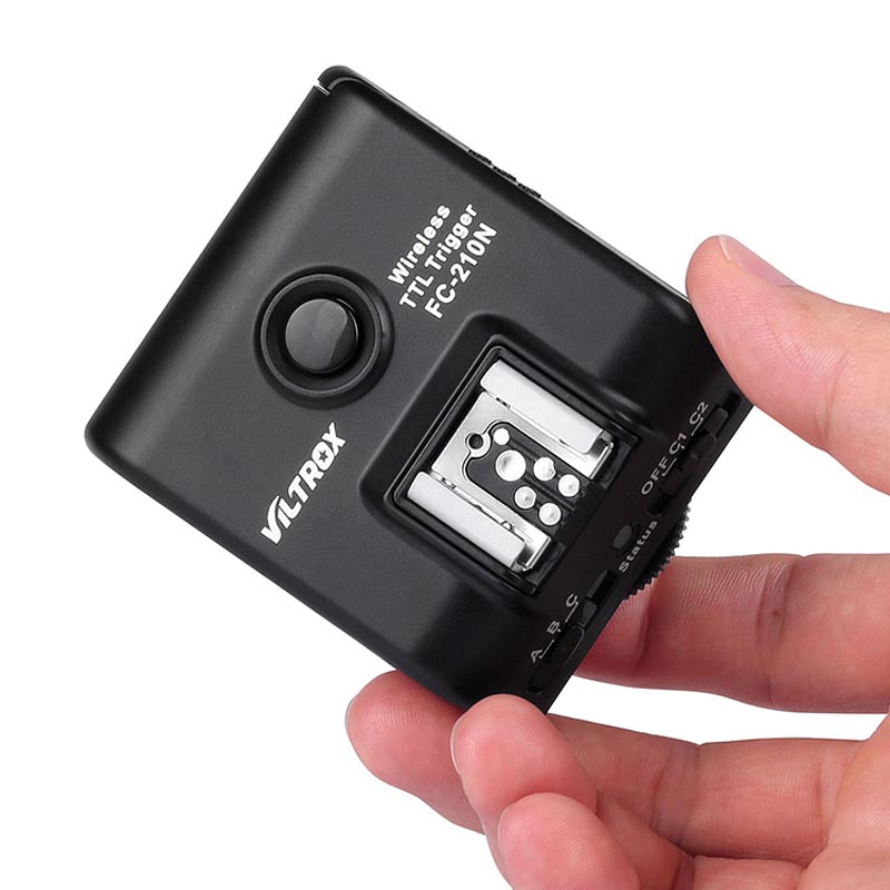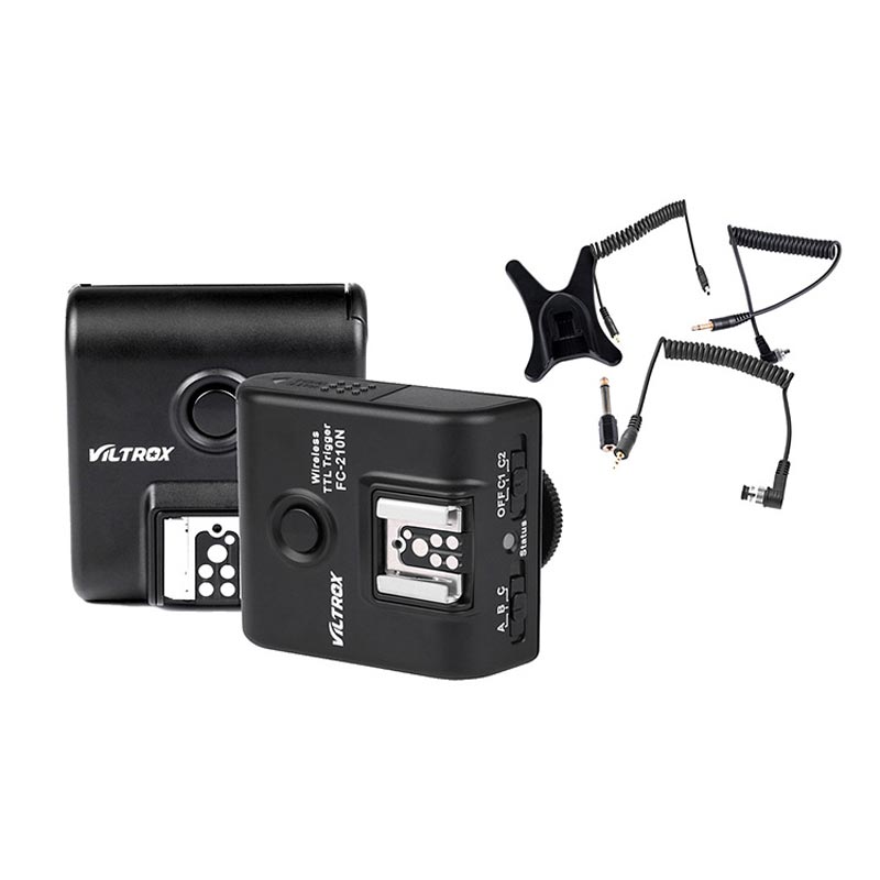 Viltrox FC 210 Nikon κιτ. Το Viltrox FC 210 Nikon κιτ είναι ένας επαγγελματικός πομποδέκτης ραδιοσυχνοτήτων με τον οποίο με τον οποίο γίνεται τηλεχειρισμός διαφορετικών ομάδων φλας με υποστήριξη επικοινωνίας TTL μεταξύ του φλας και της μηχανής, ενώ ταυτόχρονα γίνεται συγχρονισμός των εκτός μηχανής φλας.