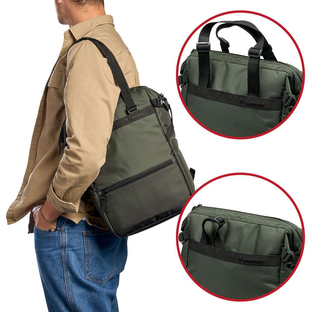 Manfrotto Street Convertible Tote Bag. Όπως υποδηλώνει το όνομά της, η τσάντα – ταγάρι Manfrotto Street Convertible Tote Bag σε πράσινο χρώμα σας επιτρέπει να την τακτοποιήσετε σε διαφορετικές διαμορφώσεις για να ταιριάζει με τις διαρκώς μεταβαλλόμενες ανάγκες σας