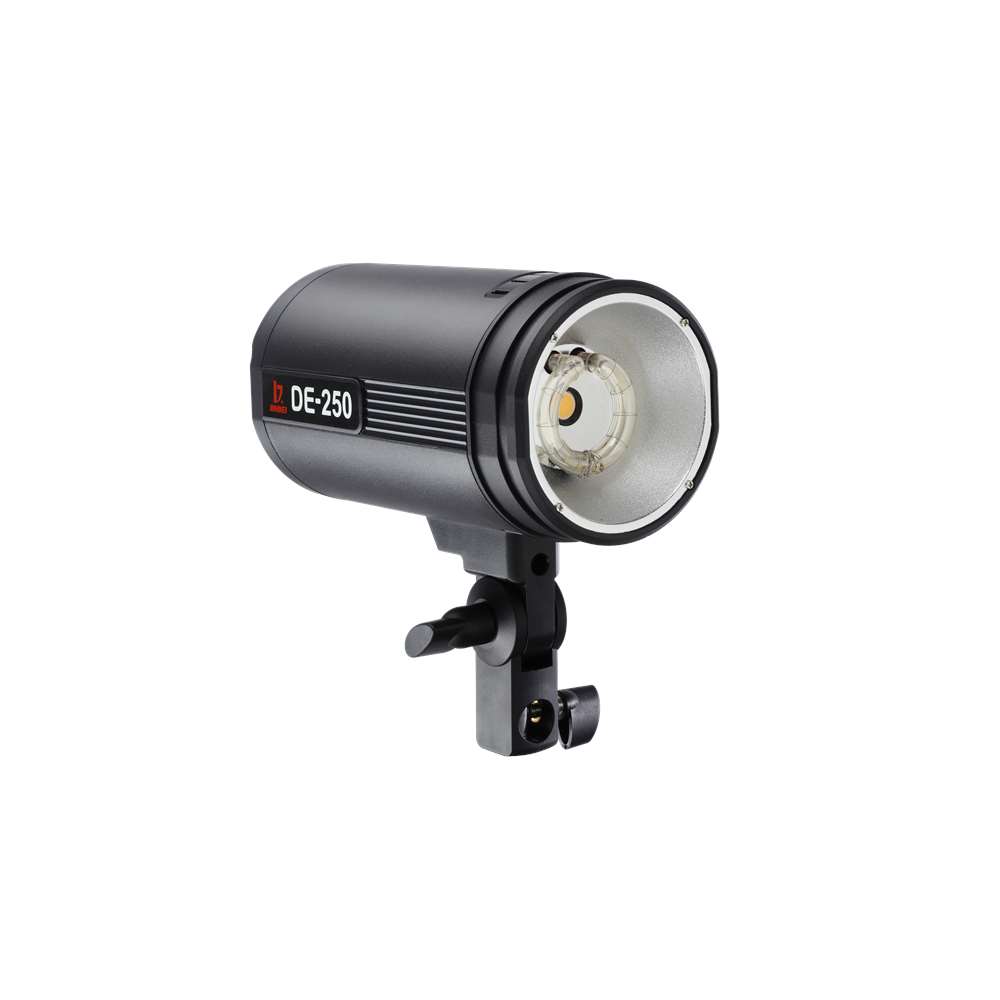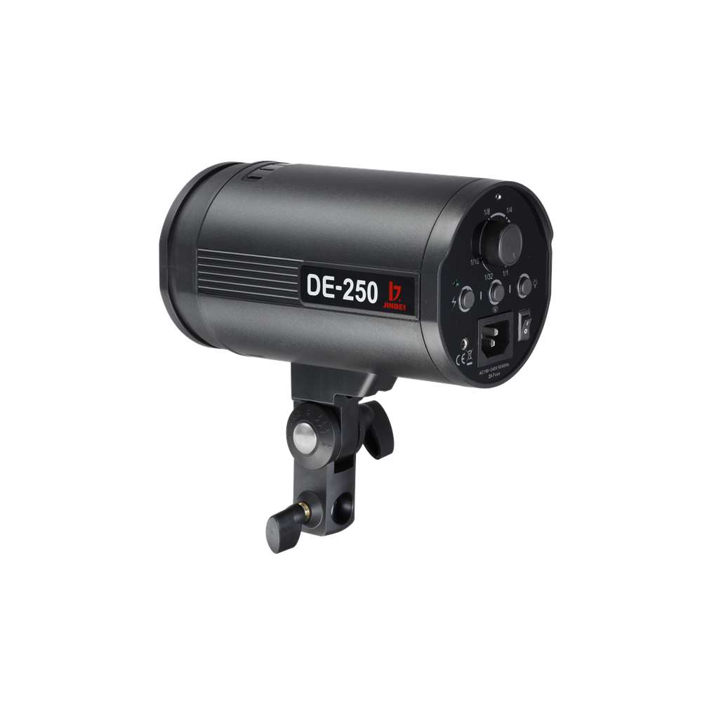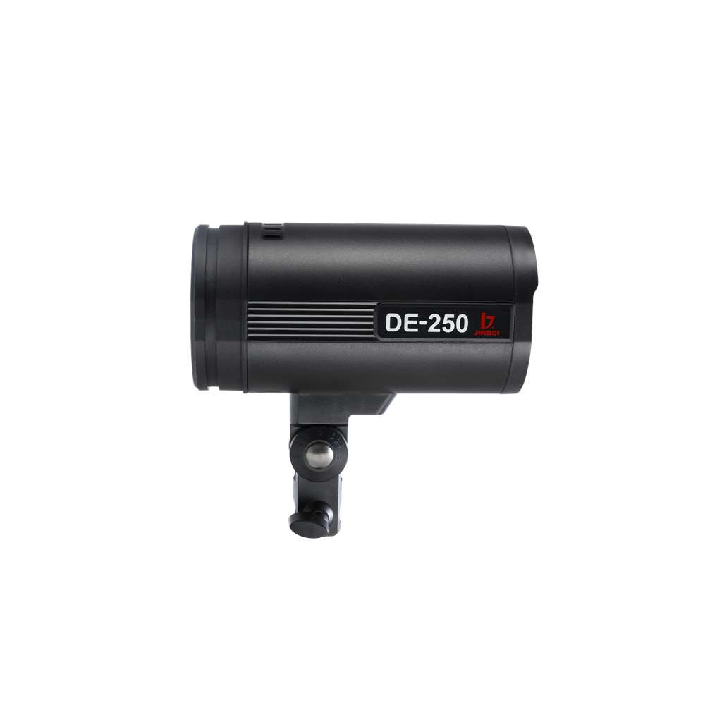 Jinbei DE-250. Αυτοκέφαλο στούντιο φλας ισχύος 250 W/s. Το DE-250 είναι πρόσφατη προσθήκη στη σειρά αυτοκέφαλων φλας της Jinbei και ενσωματώνει νέα, εξελιγμένη τεχνολογία φλασόλαμπας και κεντρικού πυκνωτή, ενώ είναι μικρότερο σε μέγεθος σε σύγκριση με το προκάτοχό του.