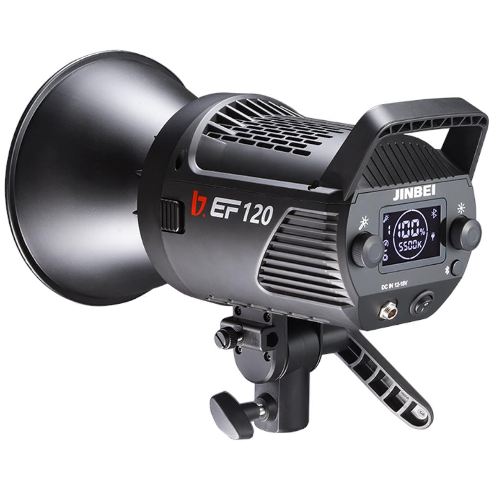 Jinbei EF-120 Daylight LED. Το φωτιστικό Daylight LED Jinbei EF-120 με ισχύ 120 W και δυνατότητα τροφοδοσίας από εναλλασσόμενο ρεύμα ή μπαταρία, χρησιμοποιεί φωτιστική πηγή υψηλής φωτεινής απόδοσης με τεχνολογία COB (Chip On Board), προσφέρει δυνατότητα τηλεχειρισμού από εφαρμογή και διαθέτει μοντούρα εξαρτημάτων Bowens.
