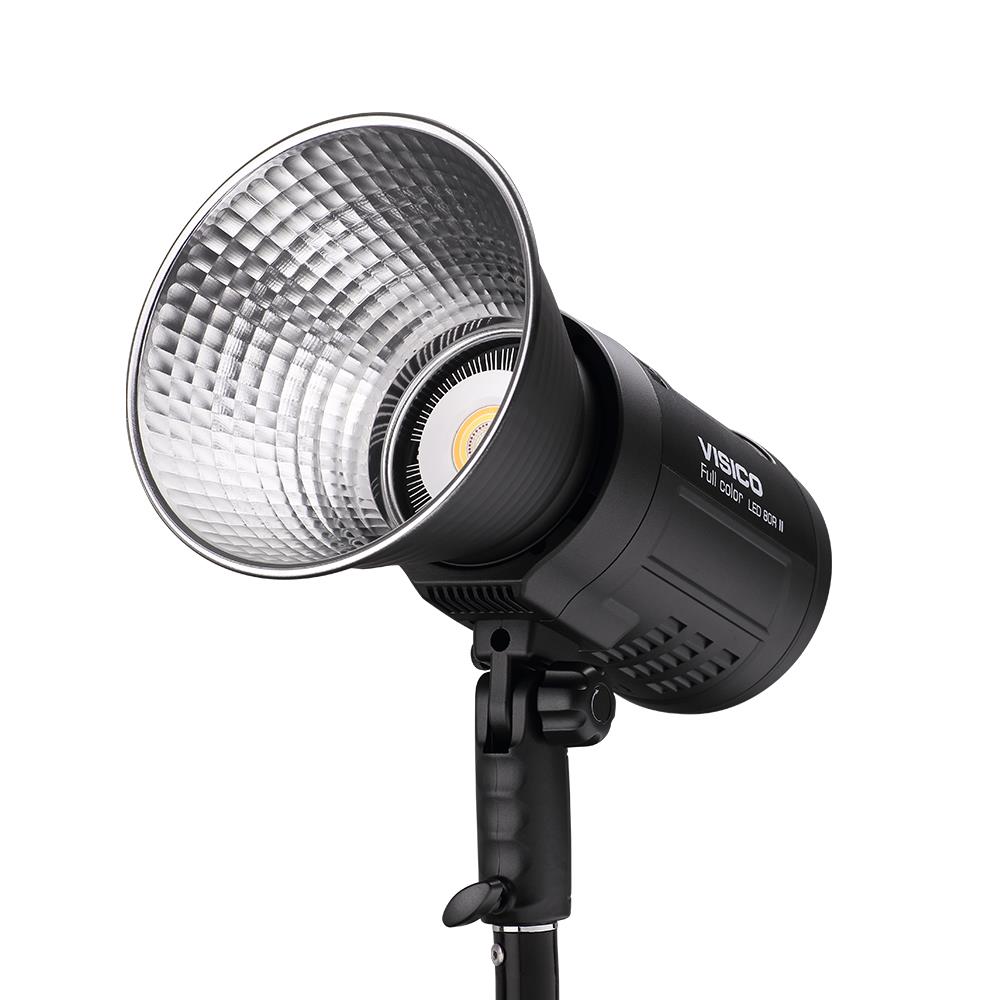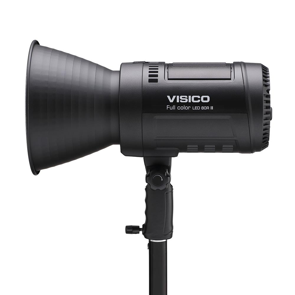Visico 80R ΙΙ RGB LED. RGB COB LED 80 W με μεταβλητή χρωματική θερμοκρασία και ειδικά εφέ, δείκτη CRI 97+ για υψηλή ακρίβεια χρώματος, μοντούρα Bowens, τροφοδοσία ρεύματος ή μπαταρίας και δυνατότητα τηλεχειρισμού από εφαρμογή.