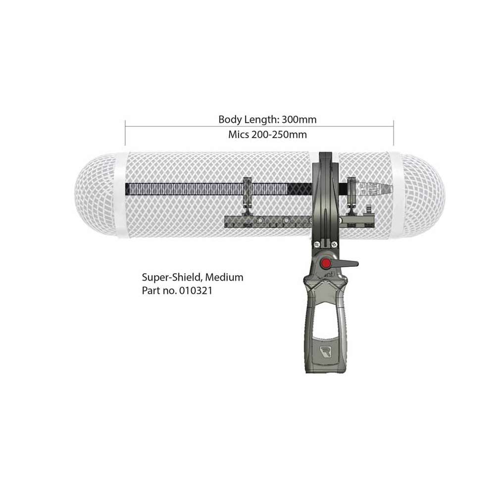 Rycote Super-Shield kit, medium. Κιτ Super-Shield της Rycote για μικρόφωνα που αποτελείται από αντιανεμικό καλάθι, καλώδιο XLR, αντικραδασμική βάση ανάρτησης και γούνινο αντιανέμιο.