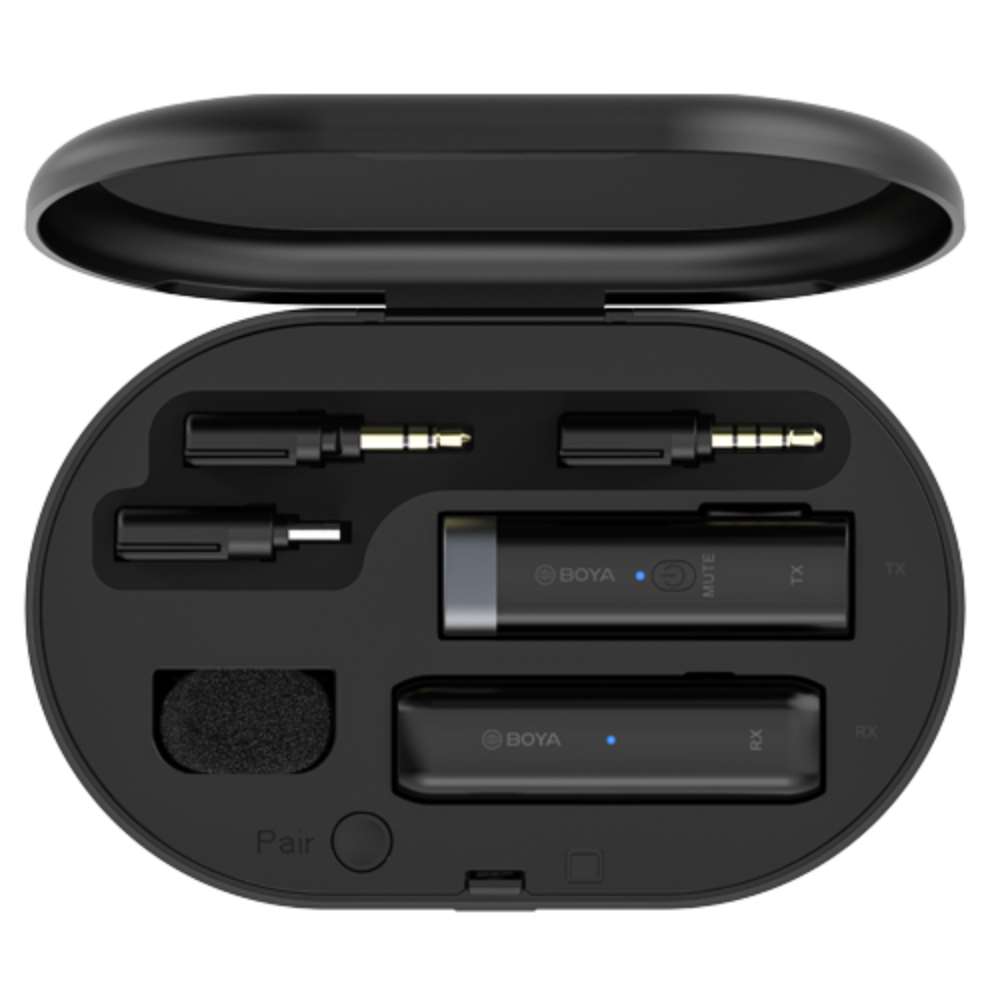 Boya BY-WM3U. Ασύρματο σύστημα μικροφώνου 2,4 GHz, με καινοτόμο σχεδίαση όπου το μικρόφωνο είναι ενσωματωμένο στον πομπό. Η θήκη αποθήκευσης του Boya BY-WM3U προσφέρει σύζευξη και φόρτιση του πομπού και του δέκτη.