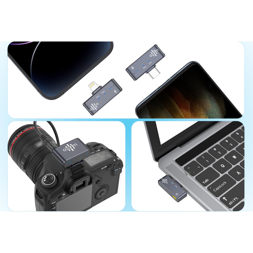 Luucco AirWave K2 Camera. Σετ με 2 ασύρματα μικρόφωνα πέτου και 1 δέκτη ο οποίος είναι συμβατός με κάμερες και διαθέτει ποδαράκι για cold ή hot shoe.