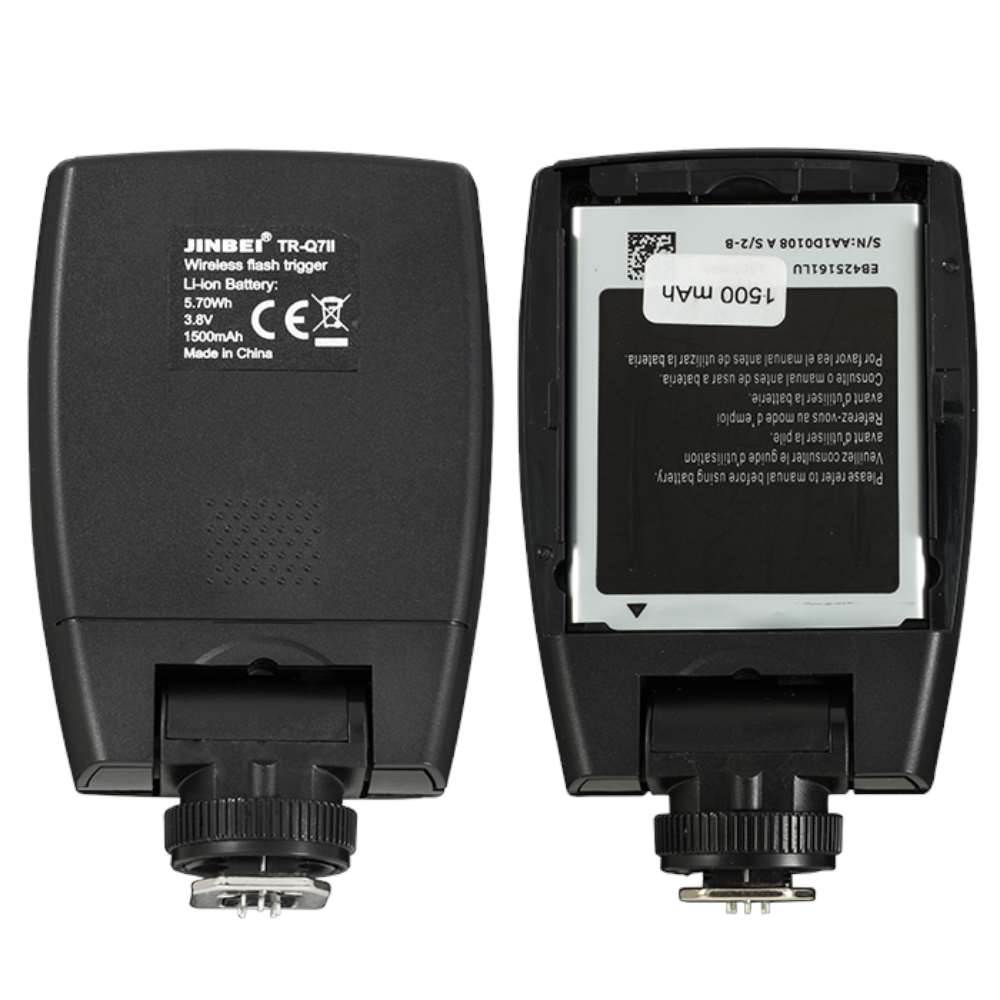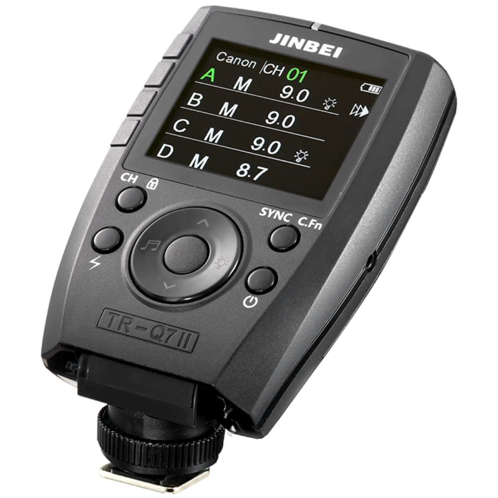 Jinbei TR-Q7 II TTL Universal. Πομπός ραδιοσυχνοτήτων για ασύρματη πυροδότηση φλας speedlight και στούντιο φλας, με λειτουργίες TTL και Manual, συγχρονισμό υψηλής ταχύτητας HSS, επαναφορτιζόμενη μπαταρία λιθίου με δυνατότητα αντικατάστασης και συμβατότητα με μηχανές Canon / Nikon / Sony / Fuji / Panasonic / Olympus.