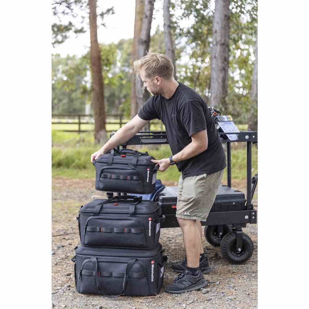 Manfrotto Pro Light Cineloader Large. Τσάντα μεταφοράς εξοπλισμού video σε μικρό μέγεθος ειδικά σχεδιασμένη για εργασίες που απαιτούν ταχύτητα. Χωρά μία βιντεοκάμερα EFP με όλα τα απαιτούμενα εξαρτήματά της, καθώς και εξοπλισμό φωτισμού και ηχοληψίας.
