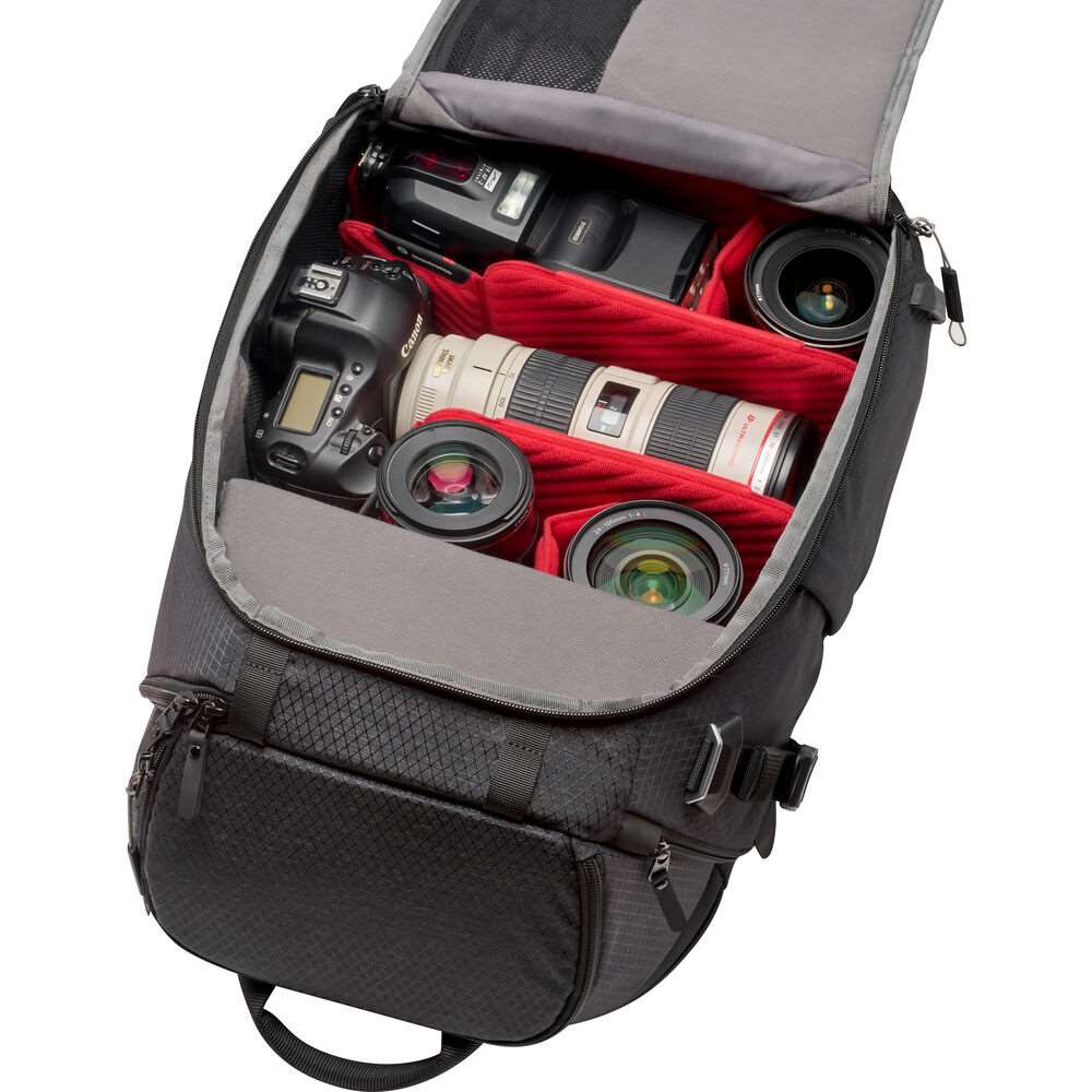 Manfrotto Pro Light Multiloader Backpack M. Tο μεσαίου μεγέθους φωτογραφικό σακίδιο πλάτης Manfrotto Pro Light Multiloader Backpack M έχει σχεδιαστεί για τον επαγγελματία φωτογράφο που βρίσκεται εν κινήσει και θέλει να έχει μαζί του όλο τον εξοπλισμό του και χωρά δύο μηχανές DSLR ή mirrorless με προσαρμοσμένους φακούς και επιπλέον μέχρι τέσσερις φακούς, ένα πτυσσόμενο drone, εξαρτήματα, ένα laptop 15″ και προσωπικά αντικείμενα.