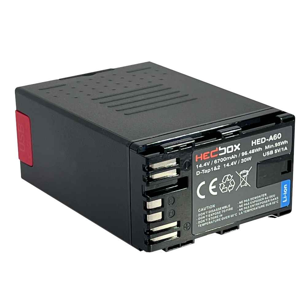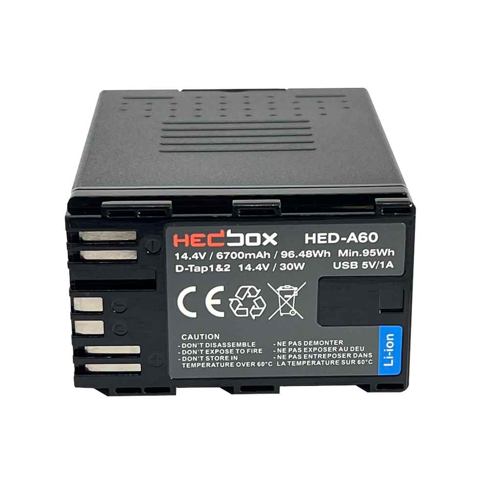 HedBOX HED-A60 Μπαταρία 96.5Wh. Μπαταρία λιθίου με ενέργεια 96,5 Wh και χωρητικότητα 6700 mAh για Canon HD Camcorders, η οποία διαθέτει 2x εξόδους D-Tap και μία έξοδο USB-A.