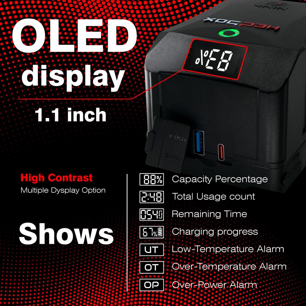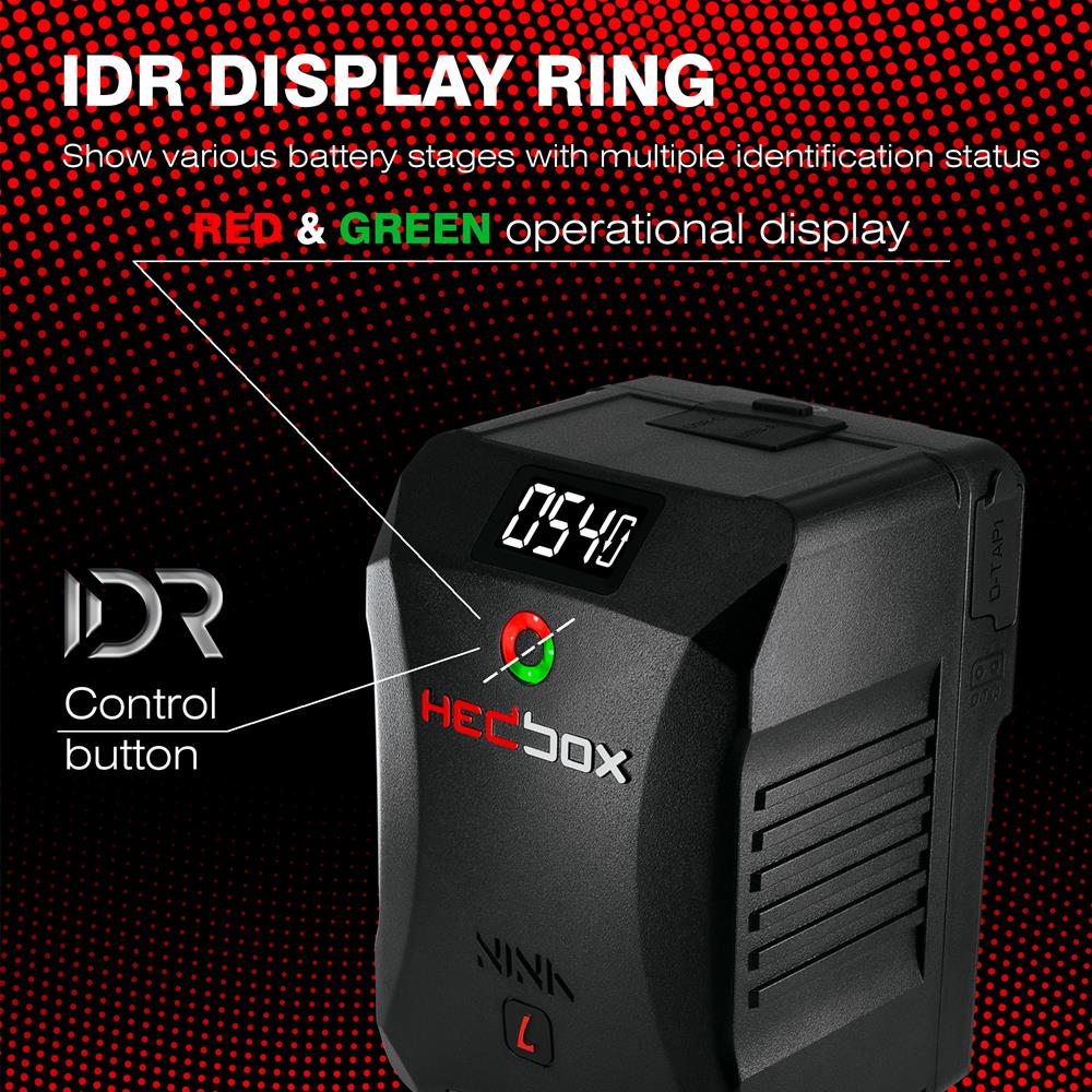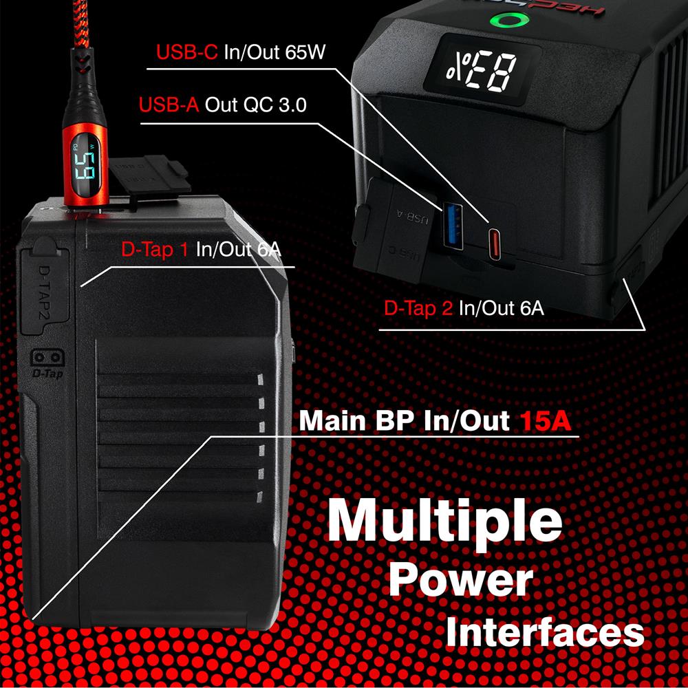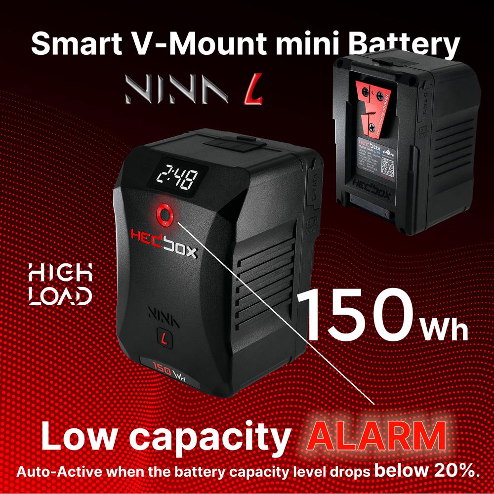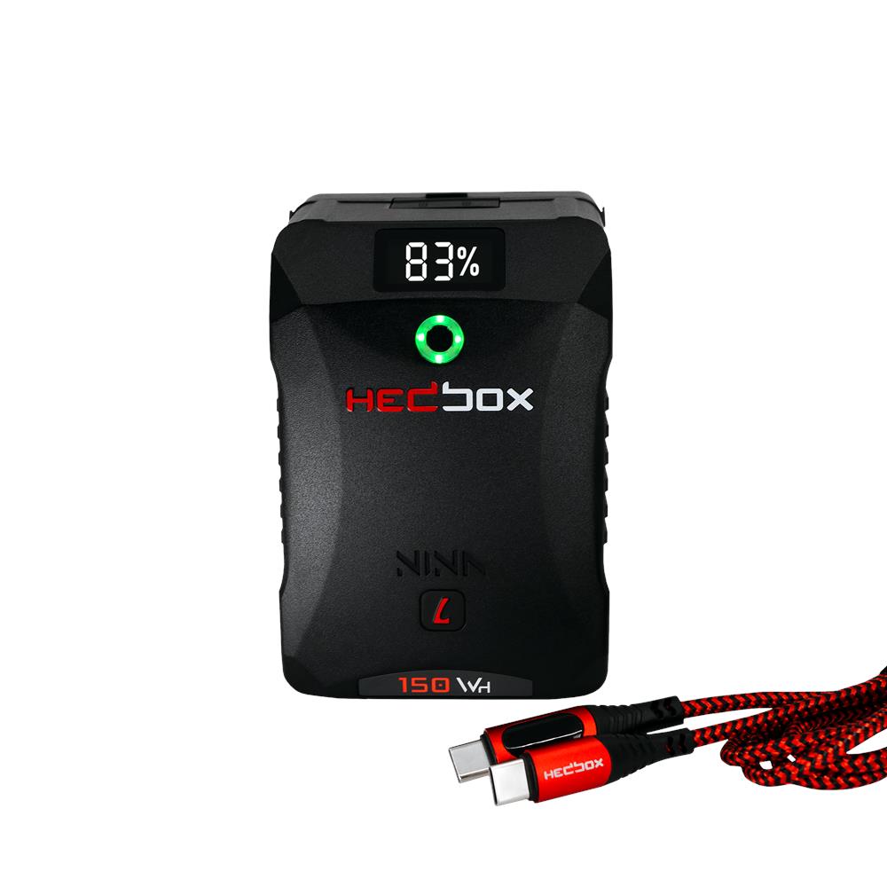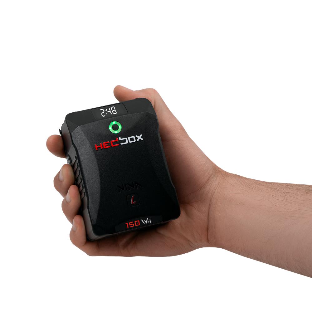 HedBOX NINA L Μπαταρία 150Wh. Μίνι μπαταρία λιθίου μοντούρας V-Mount με ενέργεια 150 Wh, οθόνη OLED, ειδοποίηση χαμηλού φορτίου και εξόδους USB-A, USB-C και 2x D-Tap.