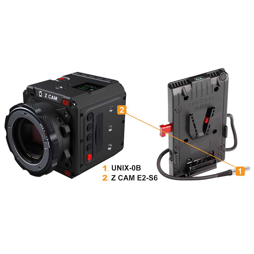 HedBOX UNIX-0B V-Lock Πλακέτα Μπαταρίας. Επαγγελματική πλακέτα μπαταρίας με μοντούρα V-Lock, 3 εξόδους D-Tap 14,8 V / 10 A, 1 έξοδο USB 5 V / 2,1 A και ενσωματωμένο καλώδιο με βύσμα FGG.0B.302 2 ακίδων, συμβατό με συσκευές Teradek.