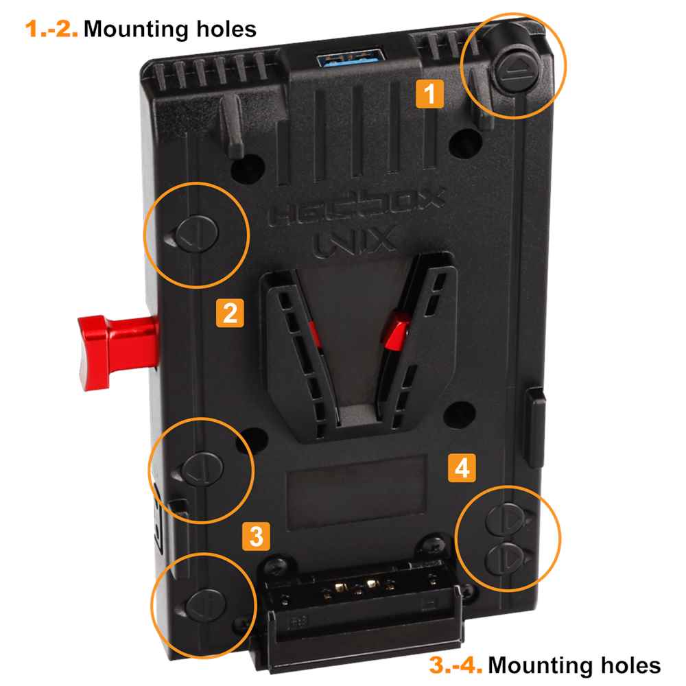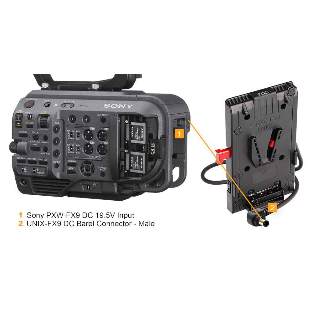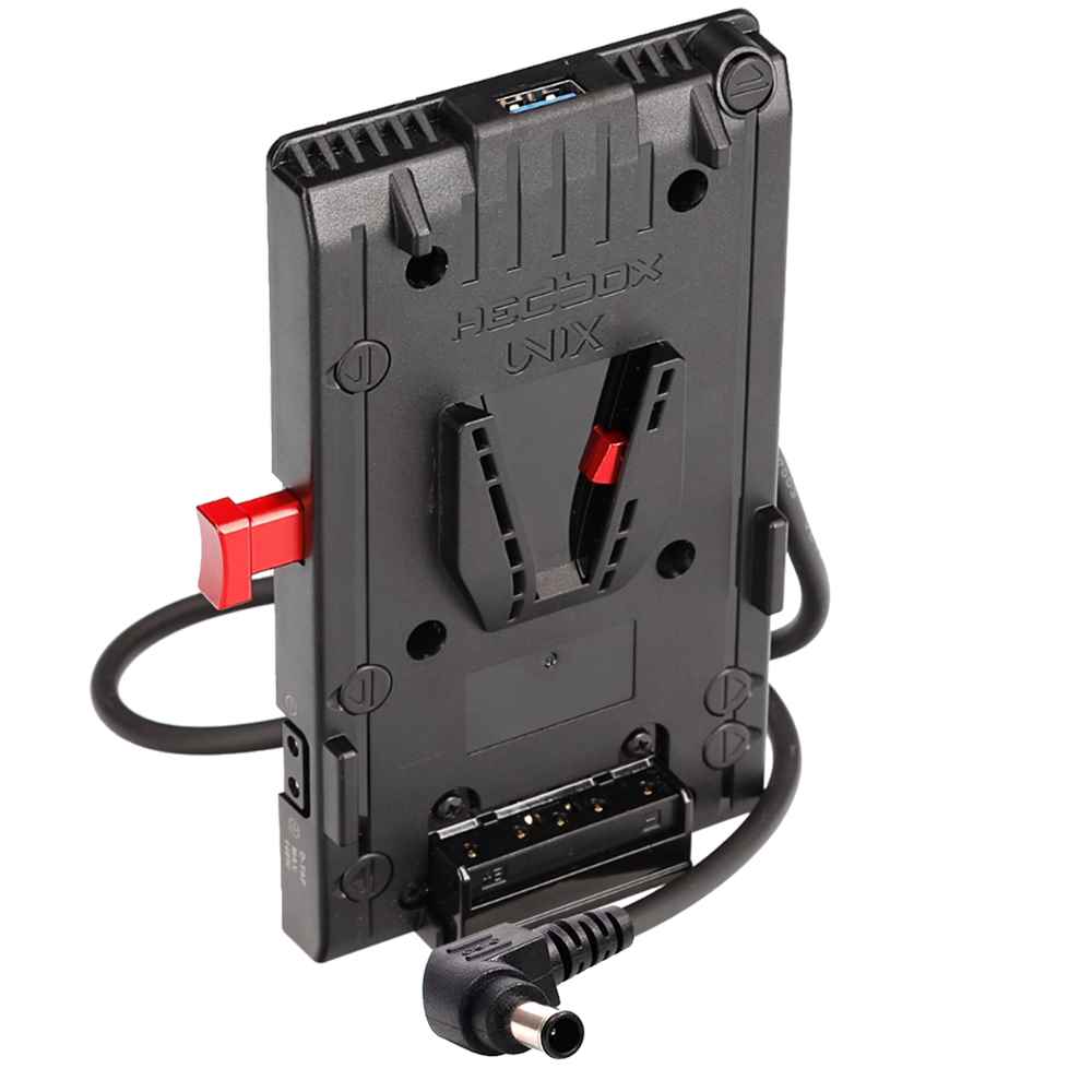 HedBOX UNIX-FX9 V-Lock Πλακέτα Μπαταρίας. Επαγγελματική πλακέτα μπαταρίας με μοντούρα V-Lock, 3 εξόδους D-Tap 14,8 V / 10 A, 1 έξοδο USB 5 V / 2,1 A και ενσωματωμένο καλώδιο με σταθεροποιημένο γωνιακό βύσμα EIAJ-05, συμβατή με κάμερες Sony ILME-FX6 και PXW-FX9.