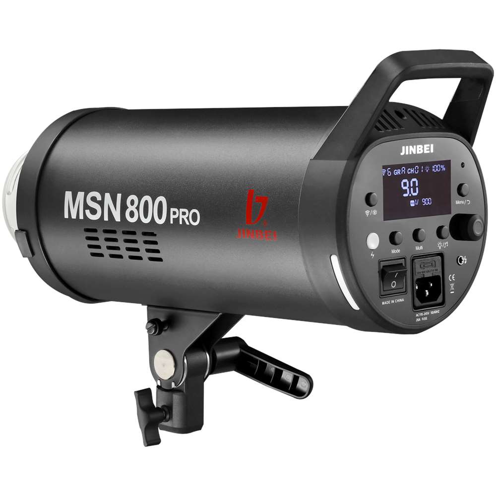 Jinbei MSN 800 Pro. Αυτοκέφαλο στούντιο φλας ισχύος 800 Ws με μοντούρα εξαρτημάτων Bowens S. Η σειρά στούντιο φλας MSN Pro περιλαμβάνει τέσσερα μοντέλα που αποτελούν τους διαδόχους της σειράς MSN III. Τα στούντιο φλας της σειράς MSN Pro έχουν πολύ μικρότερες διάρκειες λάμψης στη λειτουργία Freeze και ακόμη προσφέρουν μικρότερους χρόνους ανακύκλωσης.