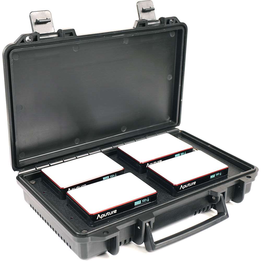 Aputure MC Travel Kit 4. Το κιτ ταξιδίου Aputure MC 4-Light με θήκη φόρτισης περιλαμβάνει τέσσερα φωτιστικά Aputure MC, θήκη φόρτισης και εξαρτήματα.