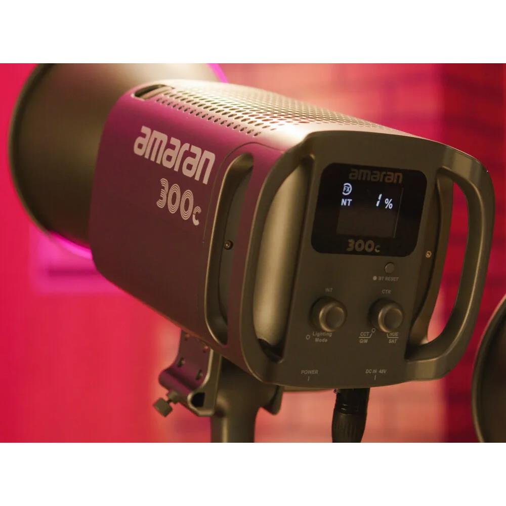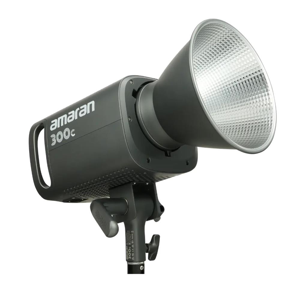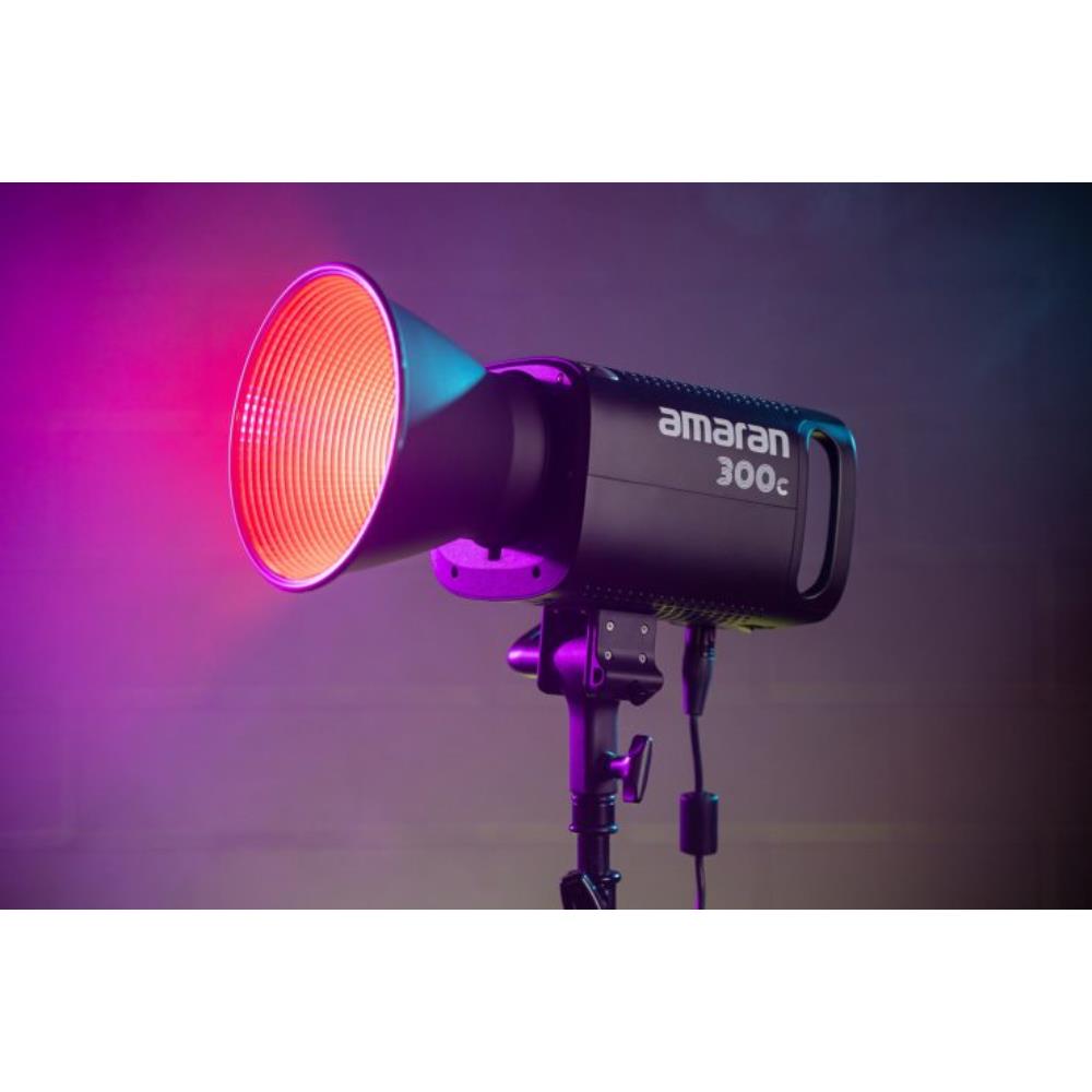 Aputure Amaran 300c LED. Το Amaran 300c είναι το πρώτο πλήρως έγχρωμο φωτιστικό 300 W LED της εταιρείας με σημειακή φωτιστική πηγή και μοντούρα Bowens που προορίζεται για ανεξάρτητους (indie) δημιουργούς ταινιών και καλλιτέχνες.