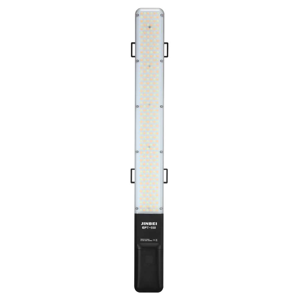 Jinbei EFT-550 LED. Το Jinbei EFT-550 LED είναι ένα φωτιστικό σε σχήμα ράβδου, ιδανικό για εφέ κίνησης, για επιλεκτικό φωτισμό ή για φωτισμό περιγραμμάτων, με δυνατότητα μεταβολής της χρωματικής θερμοκρασίας.
