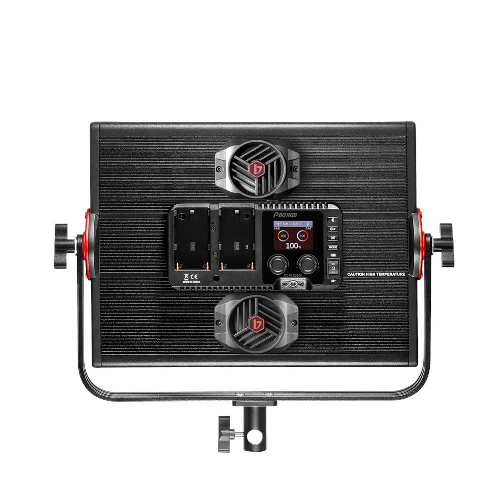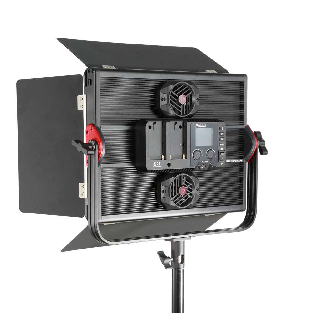 Jinbei P80RGB LED Panel. Φωτιστικό RGB panel LED μπαταρίας και εναλλασσόμενου ρεύματος, με μεταβλητή θερμοκρασία χρώματος 2700°K έως 7500°Κ, ισχύ 80 W με 3x ισχυρότερη φωτεινότητα, δείκτη χρωματικής απόδοσης Ra > 96, δυνατότητα τηλεχειρισμού και σετ πτερυγίων.