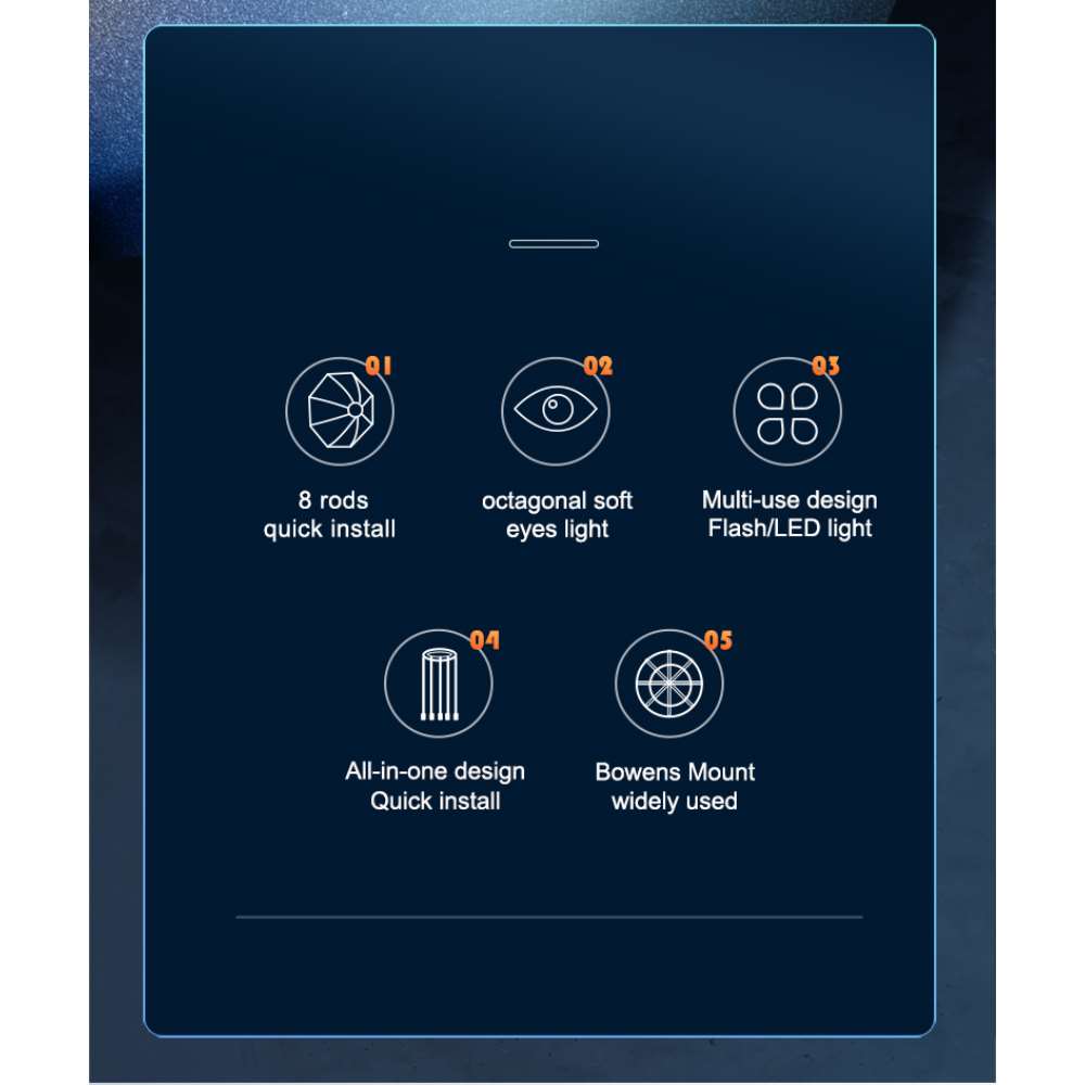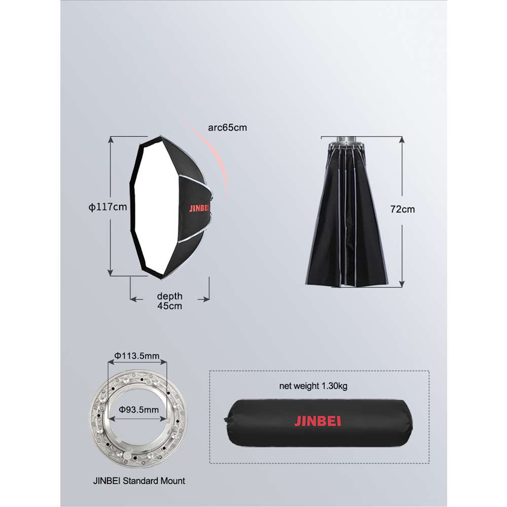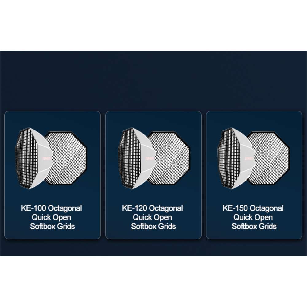 Jinbei ΚΕ 150 Quickly Open Octabox με κυψέλη. Το Jinbei ΚΕ 150 Quickly Open Octabox με κυψέλη είναι ένα softbox που αποδίδει φως με απαλό χαρακτήρα ιδανικό για λήψεις μόδας, beauty και πορτραίτου.