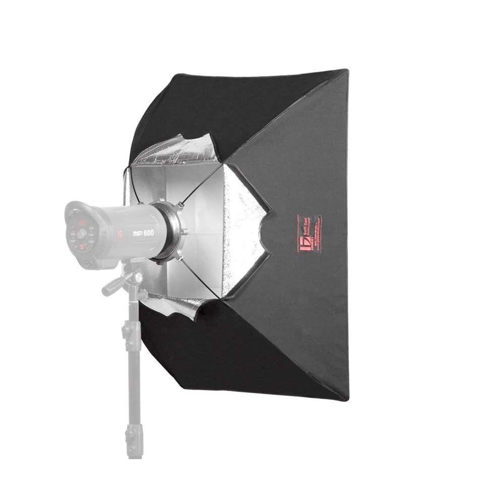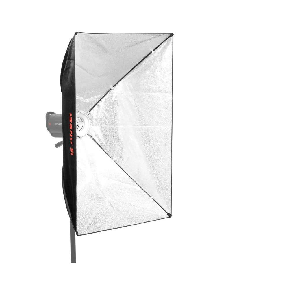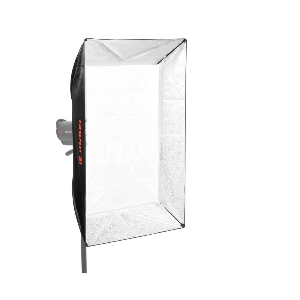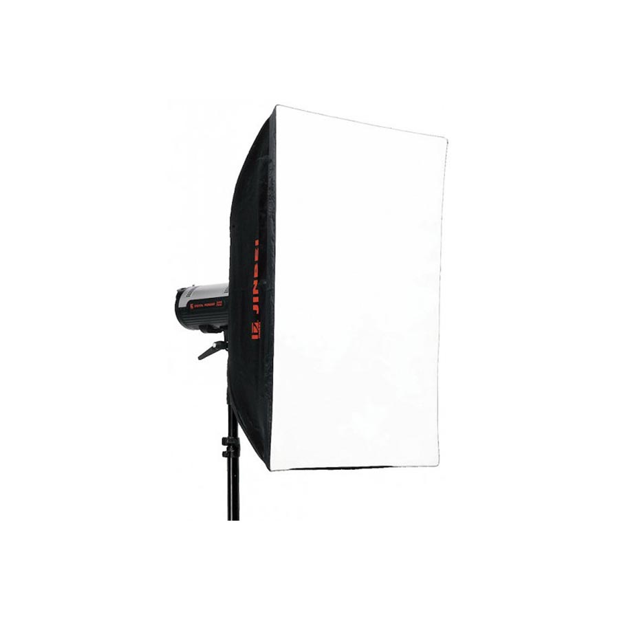 Jinbei M softbox 60×90. Το softbox λειτουργεί κατευθύνοντας ελεγχόμενη δέσμη φωτισμού επάνω στο αντικείμενο της φωτογράφησης. Η εμπρόσθια επιφάνεια λειτουργεί ως διαχυτήρας με σκοπό τον ομοιόμορφο φωτισμό του θέματος χωρίς τοπικές υπερφωτίσεις.