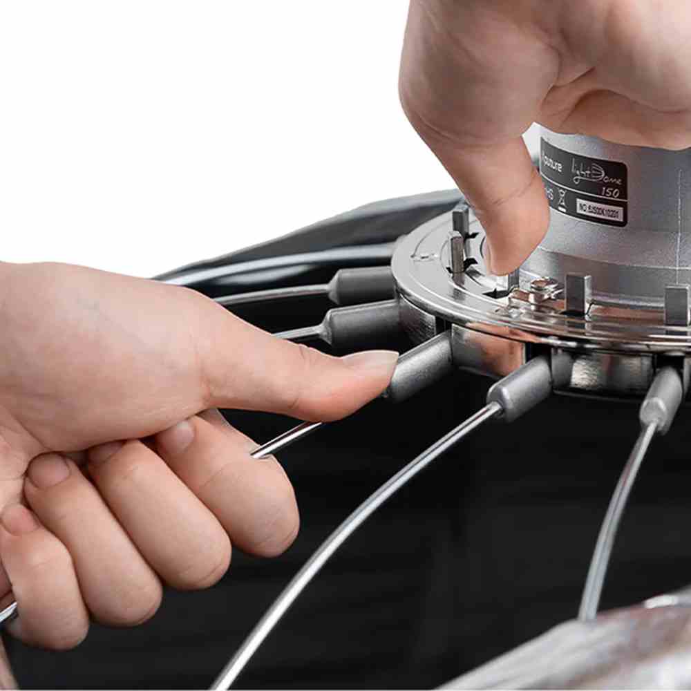 Light Dome 150 Softbox. Το Light Dome 150 είναι ένα κυκλικό soft box διαμέτρου 150 cm με μοντούρα Bowens που μετατρέπει υψηλής ισχύος φωτιστικά LED με μοντούρα Bowens, όπως το LS 600d Pro ή το LS 600x Pro, σε μια τεράστια απαλή φωτιστικά πηγή, που φωτίζει κομψά μεγάλους χώρους.