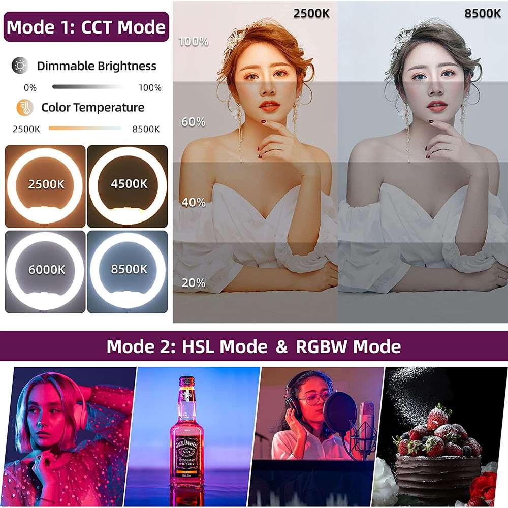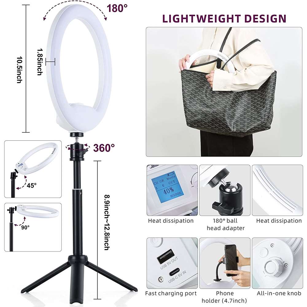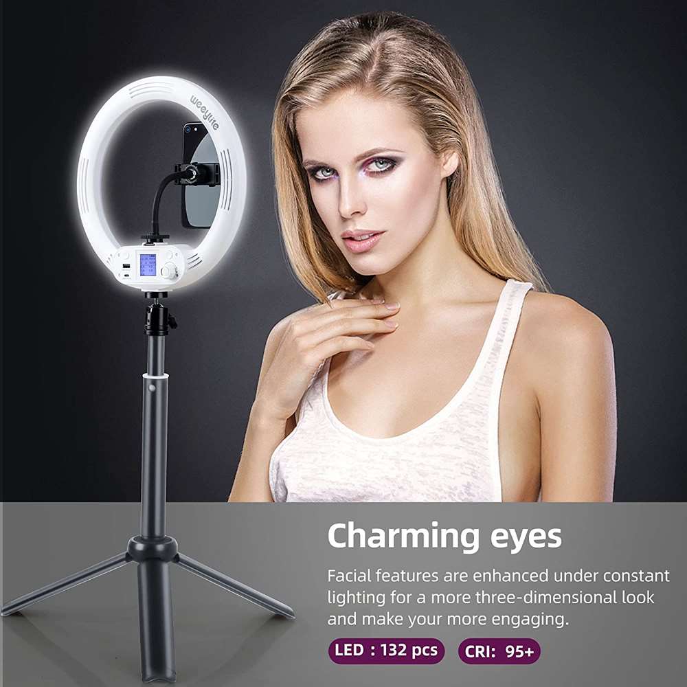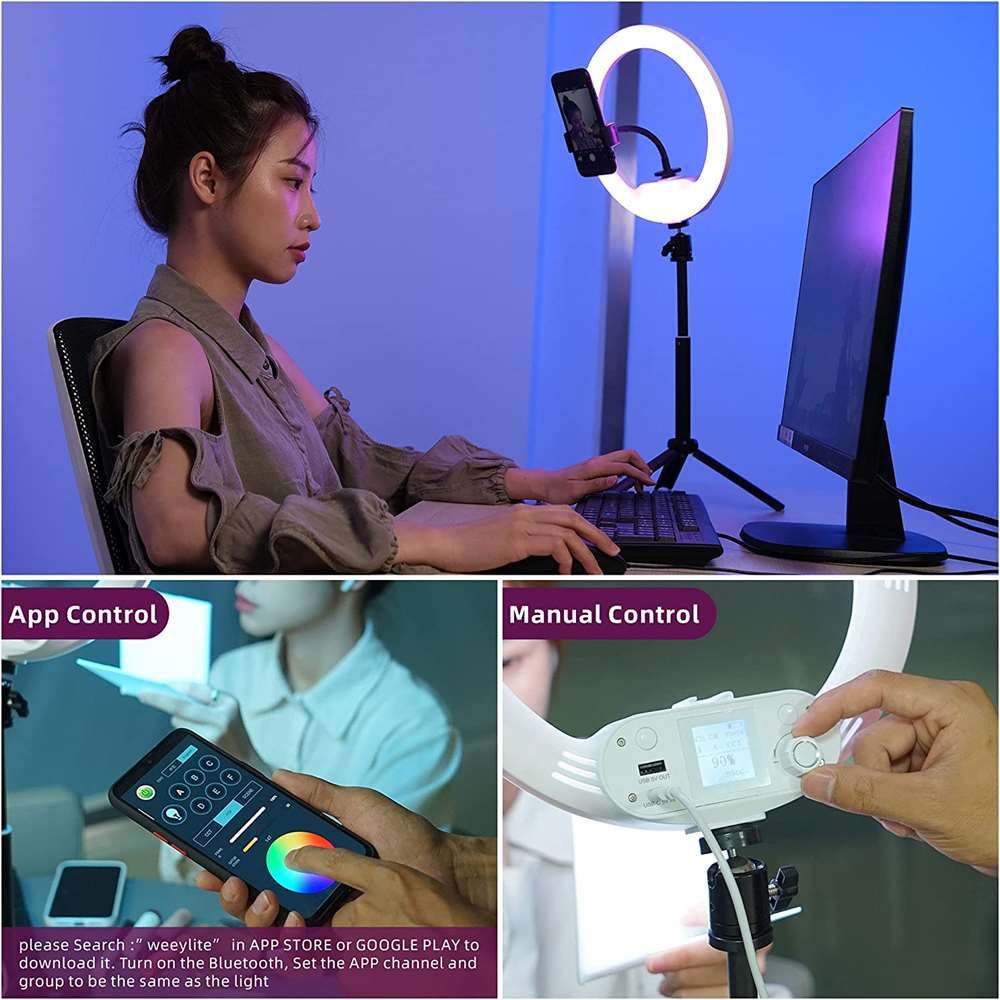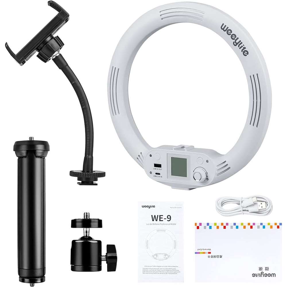 Viltrox Weeylite WE-9 Δακτύλιος LED RGB. Φωτιστικό δακτυλίου RGB LED διαμέτρου 25 cm με ενσωματωμένη μπαταρία, μεταβλητή θερμοκρασία χρώματος, δυνατότητα ελέγχου από εφαρμογή, επιτραπέζιο τρίποδο και θήκη για κινητό τηλέφωνο.