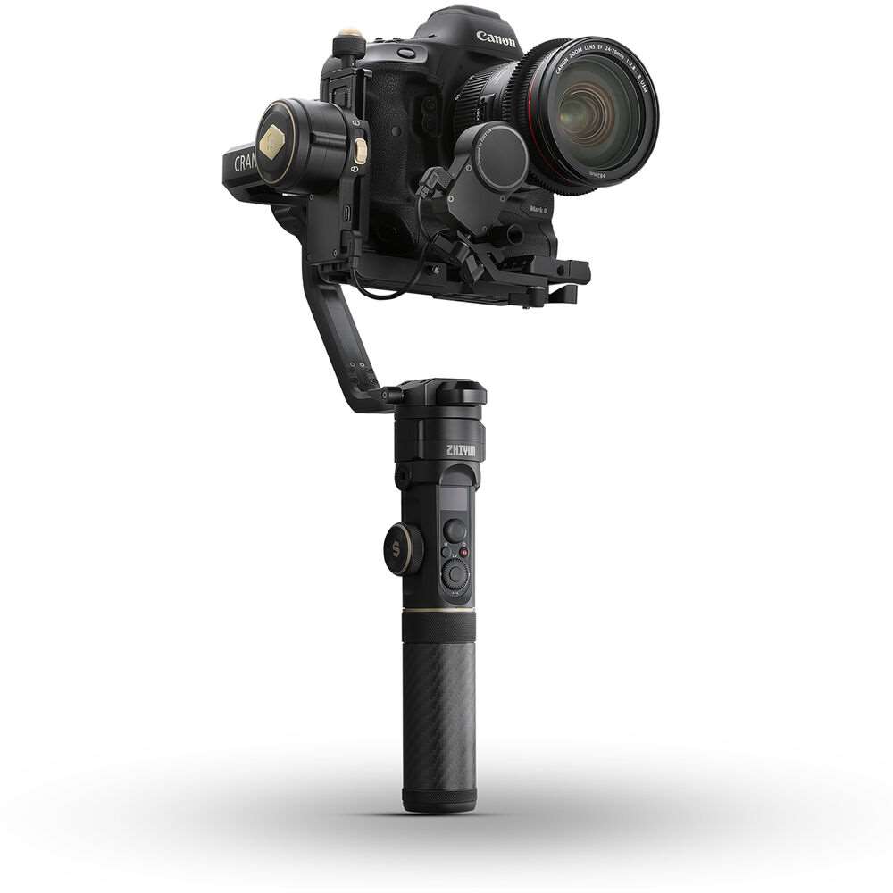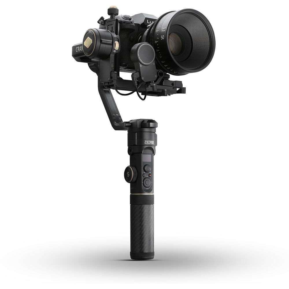 Zhiyun Crane 2S. Το Zhiyun CRANE 2S είναι η εξέλιξη του Crane 2 και έχει αναβαθμιστεί ιδιαίτερα ώστε να ανταποκρίνεται καλύτερα στις ανάγκες των δημιουργών ταινιών. Διαθέτοντας έναν νέας γενιάς 9ο αλγόριθμο Instune που βελτιώνει την απόκριση κάθε άξονα, το CRANE 2S μπορεί να σταθεροποιήσει μεγάλες κάμερες όπως η Blackmagic Pocket 6K, η Panasonic S1H και η Canon EOS 1DX Mark II μαζί με αξεσουάρ (για την πλήρη λίστα συμβατών φωτογραφικών μηχανών και φακών επισκεφθείτε τον ιστότοπο της Zhiyun).