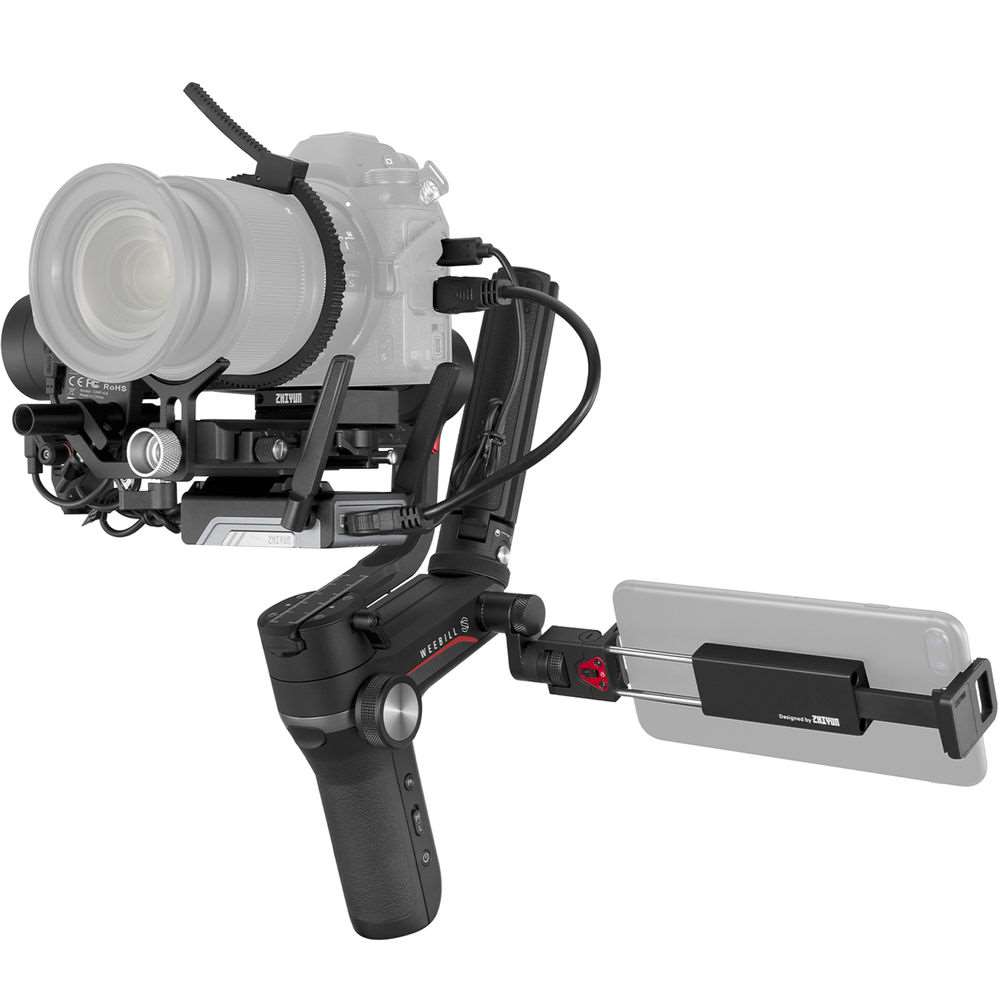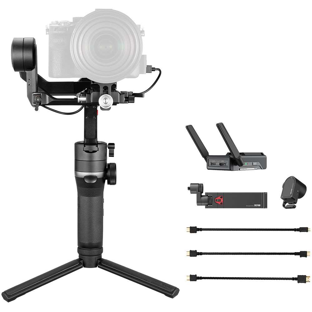 Zhiyun Weebill S Image Transmission Pro Kit. Το kit Weebill S Image Transmission Pro από την Zhiyun-Tech περιλαμβάνει το gimbal WEEBILL-S με τα παρελκόμενα του, καθώς και έναν ασύρματο πομπό βίντεο, ένα μοτέρ φακού, μια θήκη smartphone και καλώδια HDMI για ροή εργασίας που απαιτεί μετάδοση της εικόνας.